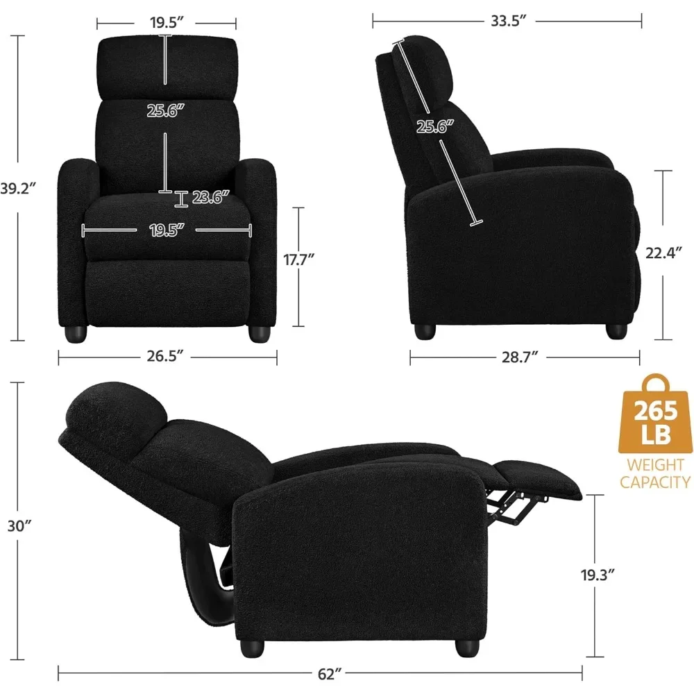 Durable Frame & Luxurious Comfort: With a strong engineered wood frame and soft fiber padding, this recliner sofa is upholstered in a warm boucle and supports up to 265 lb, ideal for unwinding after a busy day