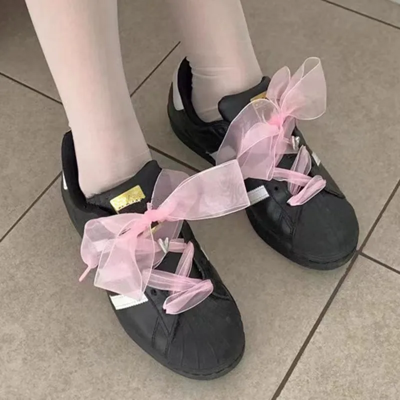 4cm Widened Transparent Chiffon Yarn Shoelaces Flat Silk Big Bow Wide Laces Trend Beauty White Casual Shoes Laces Dropship