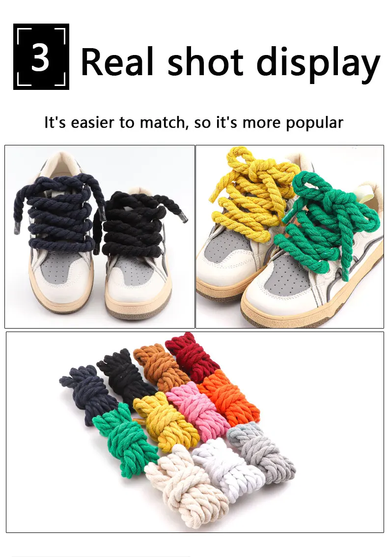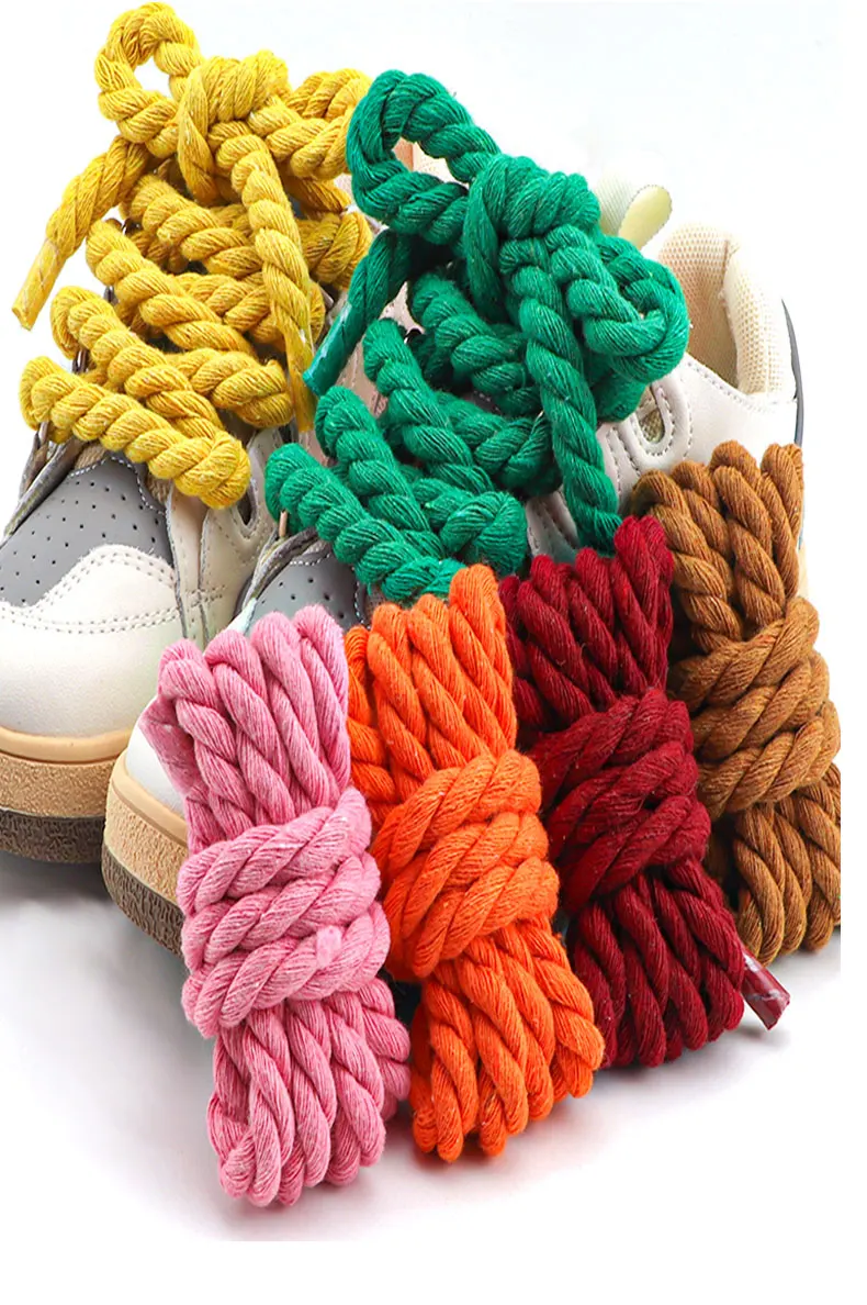 Round Shoelaces for Sneakers Colorful 1CM Thicker Cotton Linen Weaving Bold Shoelace Running Sneakers Boots Shoe Laces