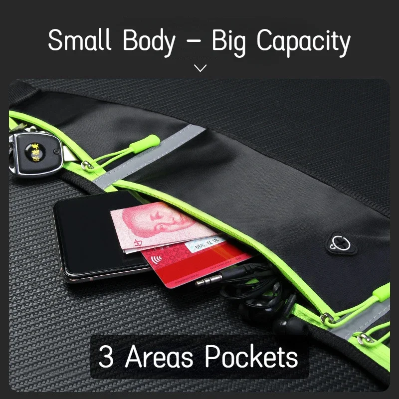 Sports Running Jogging Waist Bag Pouch Mobile Cell Phone Pocket Waterproof Invisible Belt Zipper Bag for Men Women Outdoors Gym