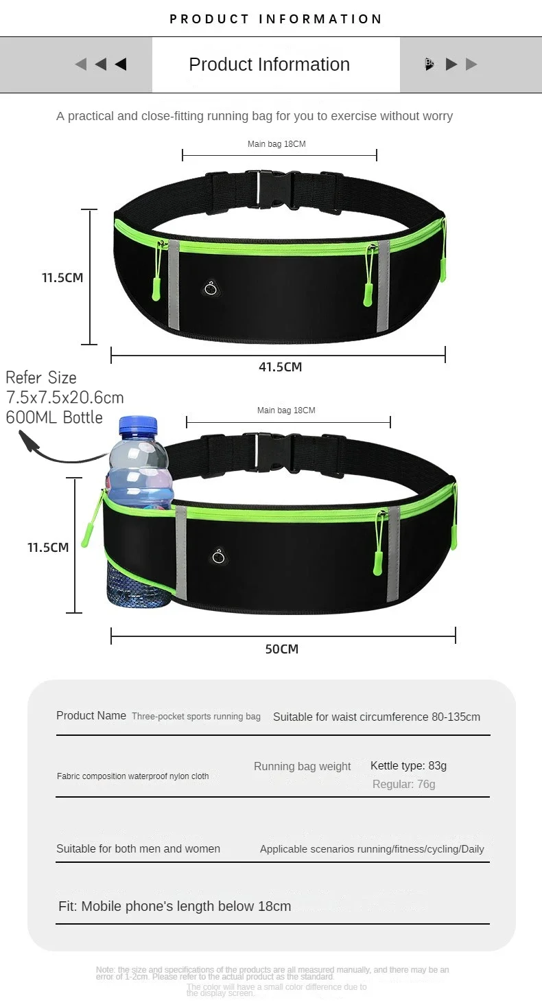 • Feature: running bag waist,running pocket bag